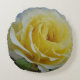 Mooie witte roos met gele hoogtepunten gefotografeerd in een botanische tuin