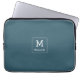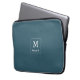 Wit Monogram en Naam op Blauw Laptop Sleeve