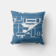 Wit op helderblauw geometrisch Abstract labyrint Kussen