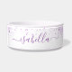 Een stijlvolle witte achtergrond, versierd met paars faux glitter stof. Personaliseer en voeg jouw naam toe die met een trendy hand geschreven stijlmanuscript met swashes wordt geschreven. Om de spoelbeurten te houden schrap slechts de steekproefnaam, verlaat de ruimten of emoji's voor en na de naam.