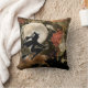 heksersilhouette vliegt over grote maan met florale rozen achtergrond.