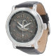 Dit ronde horloge heeft een donkerelegant ontwerp met een middelste heks pet en bezem, omgeven door ingewikkelde wervelende patronen en decoratieve sterren in pentagrammen. De tekst "Heksenhuis" wordt stoutmoedig weergegeven boven en onder de centrale beelden, geplaatst tegen een donkere achtergrond. Dit horloge is perfect voor het toevoegen van een vleugje gotische magie aan uw Halloween of mystieke decor.