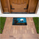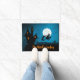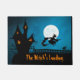 Een illustratie van een gehakt huis met een heksenvliegende heks is geaccentueerd met de zin: De heks landt.