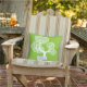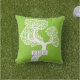 Witte abstracte cirkelboom en naam op kalkgroen buitenkussen