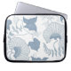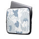 Witte achtergrond Delicate Blauwe Japanse Bloemen Laptop Sleeve