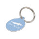 Dit huisdier ID label heeft een speelse illustratie van een alligator in een knapperige witte kleur tegen een rustgevende blauwe achtergrond. Het lettertype onder de alligatorafbeelding heeft een klassieke stijl. De combinatie van de blauw-witte kleuren geeft het label een vriendelijke en aanspreekbare uitstraling, terwijl de alligator een vleugje grilligheid en plezier toevoegt. Dit label ontwerp zou bijzonder geschikt zijn voor huisdieren met een spunky of levendige persoonlijkheid.