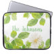 Witte Bloem en Groene Bladeren Tuin Laptop Sleeve