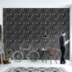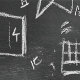Witte cijfers en wiskundige formules op zwarte ontwerp krijtbord muur decoratie. Oplossingen voor het interieur.