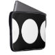 Dit vette geometrische patroon kenmerkt een witte punt in het centrum en twee witte halve cirkels op de randen van een zwarte achtergrond. Als u een monogram of een afbeelding aan het ontwerp wilt toevoegen, klik de knoop "aanpast het!". Digitaal gemaakt afbeelding. Copyright © 2012 Claire E. Skinner. Alle rechten voorbehouden.
