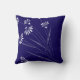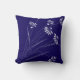 Een eenvoudig ontwerp van een paar witte daisy bloemen pop echt tegen de levendige, diepe blauwe achtergrond. Het ontwerp keert op de rug van de kussen om.