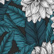 Witte Dahlia tuin/ blauwe bladeren 2 Behang