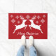 Witte deer-silhouettes op rood met sneeuwvlokken deurmat