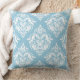 Witte en lichtblauwe damast kussen