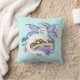 Een witte poes met vleugels zittend op een paddenstoel met bloemetjes in een achtergrond van helderblauw