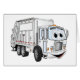 Een griezelige vuilniswagen van de cartoon die klaar is om grote ladingen te vervoeren en voor de toekomst recyclen.
