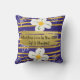 Dit vierkante kussen toont twee verschillende design, beide met grote witte bloemen. De blauwe kant van het ontwerp heeft tekst met de tekst 'When Jesus Lives in Your Heart Life Is Beautiful!' Heerlijk cadeau voor een vrouw van Christelijk geloof. Deze tekst kan worden vervangen voor maatwerk.