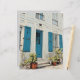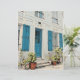 Gepersonaliseerde witte huis met blauw luiken en deur, plakboek papier. Crafting, home decor, cadeau-ideeën.