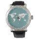 Wereldkaart op blauw aangepast kleurentijdstuk