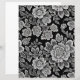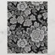 Een uniek ontwerp met witte kantbloemen op een rijke zwarte achtergrond.