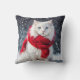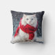 Witte kat met rode wintersjaal kussen