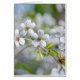 Witte kersenbloesem tegen een onscherpe multikleurige achtergrond. Schoonheid van het lente seizoen. Wit en groen schuim van een tuin in volle bloei. Prints en cadeaus voor plezier en goede stemming.