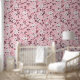 Witte kersenbloesemtakken beschilderd met waterverven en inkt op een roze achtergrond