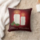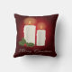 Witte kerstkaarsen op rood met aangepaste tekst kussen