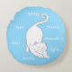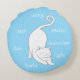 Witte Kitty Kat Yoga & Bewerkbare Tekst op Turquoi Rond Kussen