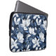 Witte Magnolia bloemen, blauwe achtergrond Laptop Sleeve