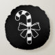 Destei's originele witte lijnkunstsilhouet van een kerstsnoepriet met een grote boog. De achtergrondkleur is zwart.