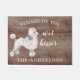 Grappig pas op voor de natte kusser" witte poedel hond deur mat gezet op een rustieke faux achtergrond. Bezoek onze winkel om een groot assortiment hondenbroden te uitzichten