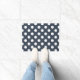 Witte polka-stippen op blauw-grijs deurmat