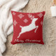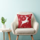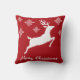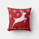 Witte rendiersilhouet op rood met sneeuwvlokken kussen
