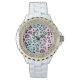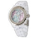 Witte emaille band met steentjes. Kenmerken luipaard print ontwerp.