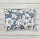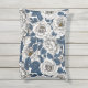 Witte rozen met blauwe bladeren op wit buitenkussen