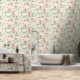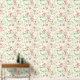 Witte rozen, roze pioenrozen, blauwe kleine bloemetjes, groen en vogeltjes voor Victoriaans behang ©OctopusArt