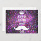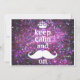 Kute girale witte snor houdt kalm en kleurrijk paars en roze vonken een glamour-vormpatroon achtergrond. Het perfecte cadeau voor haar verjaardag of elke gelegenheid