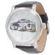 Witte spierauto cartoon - Kies achtergrondkleur Horloge