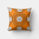 Witte stippen, zwarte repetitieve cirkels op oranje achtergrond.