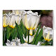 Witte tulpen met gele veren gloeien in de middagzon. Deze kaart kan worden aangepast met je eigen persoonlijke inscriptie.