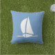 Witte zeilboot op blauw | Nautical Stripes on back Buitenkussen