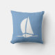 Witte zeilboot op een blauwe kussen aan de voorkant en blauwe en witte strepen aan de achterkant. Druk de douaneknoop om naam, monogram, tekst toe te voegen. Druk uitgeven knoop om de achtergrondkleur te veranderen. Geweldig voor elke kamer in huis, volwassen man vrouw kinderkamer, het zal er geweldig uitzien!