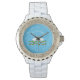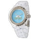 Dit geweldige horloge beschikt over een digitaal kunst afbeelding van een paar mooie witte zwanen met oranje bekken naar elkaar kijken alsof ze kussen. Onder de zwanen bevindt zich een groep roze waterleliebloemen met gele kernen en groene leliepads. Een mooi trouwontwerp. Er is aangepaste tekst, zodat u de namen van het gelukkige paar kunt opnemen.