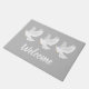 Witteduif op grijs deurmat