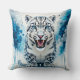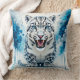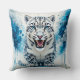 Een levendig kunstwerk met een brullende witte luipaard gecentreerd te midden van een dynamisch blauw spatontwerp, dat kracht, wildernis en creatieve flair benadrukt.