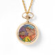 Desert Southwest Colourful Folk Art ketting, met een handgetekend ontwerp van een zuidwestelijke scène. Een stijlvol en uniek item dat een geweldig cadeau is voor jezelf of iemand anders.
