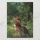 sprookjeskunst uit het verhaal van de Rood Riddershood van de Grimm. Een wolf volgt haar terwijl hij door het bos loopt met haar mand.
