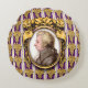 Het originele kunstwerk van ZoeSPEAK op deze Round Pillow toont een portret van de klassieke muziekcomponist Wolfgang Amadeus Mozart. Het portret is een profiel dat is ingesteld in een ovaal golden lijst. Het lijst hangt op een paarse achtergrond met gouden druiventrossen in rijen en verticale witte en lavenderstrepen.