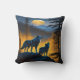 Twee wolven staan op een rotsachtige richel en staren naar een gloeiende volle maan omringd door silhouetten van bomen in een adembenemende schemeromgeving.
