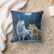 Twee majestueuze wolven staan samen in een besneeuwd bos, verlicht door de gloed van een volle maan, omringd door hoge, donkere dennen, die een gevoel van sereniteit en wilde schoonheid oproepen.